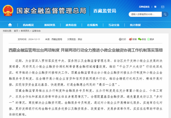 财联社记者查询发现,12月以来,除西藏外,还有河北、云南、安徽等多地金融监管部门捏续就小微企业融资息争使命机制在当地的推动情况部署使命、先容发达。