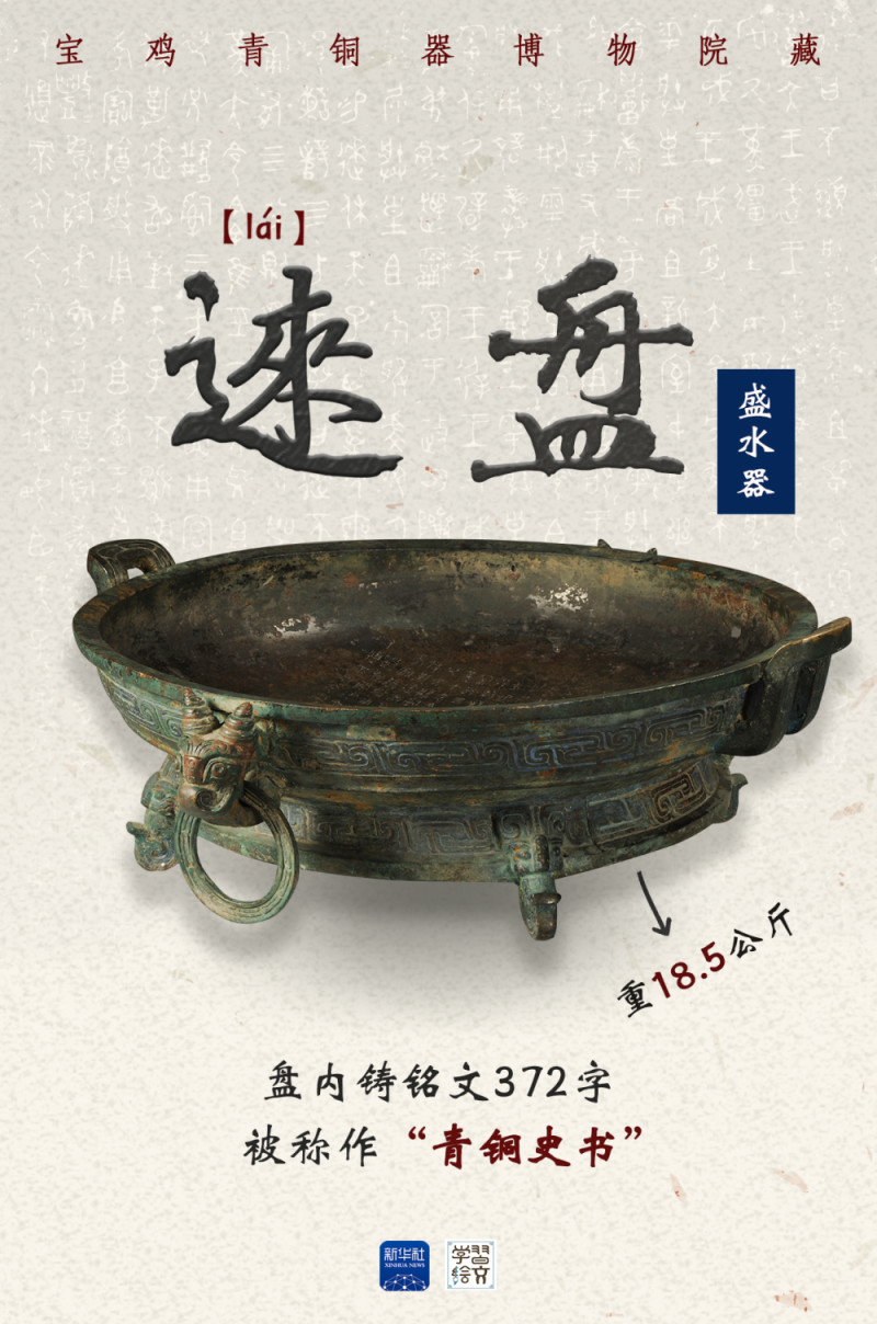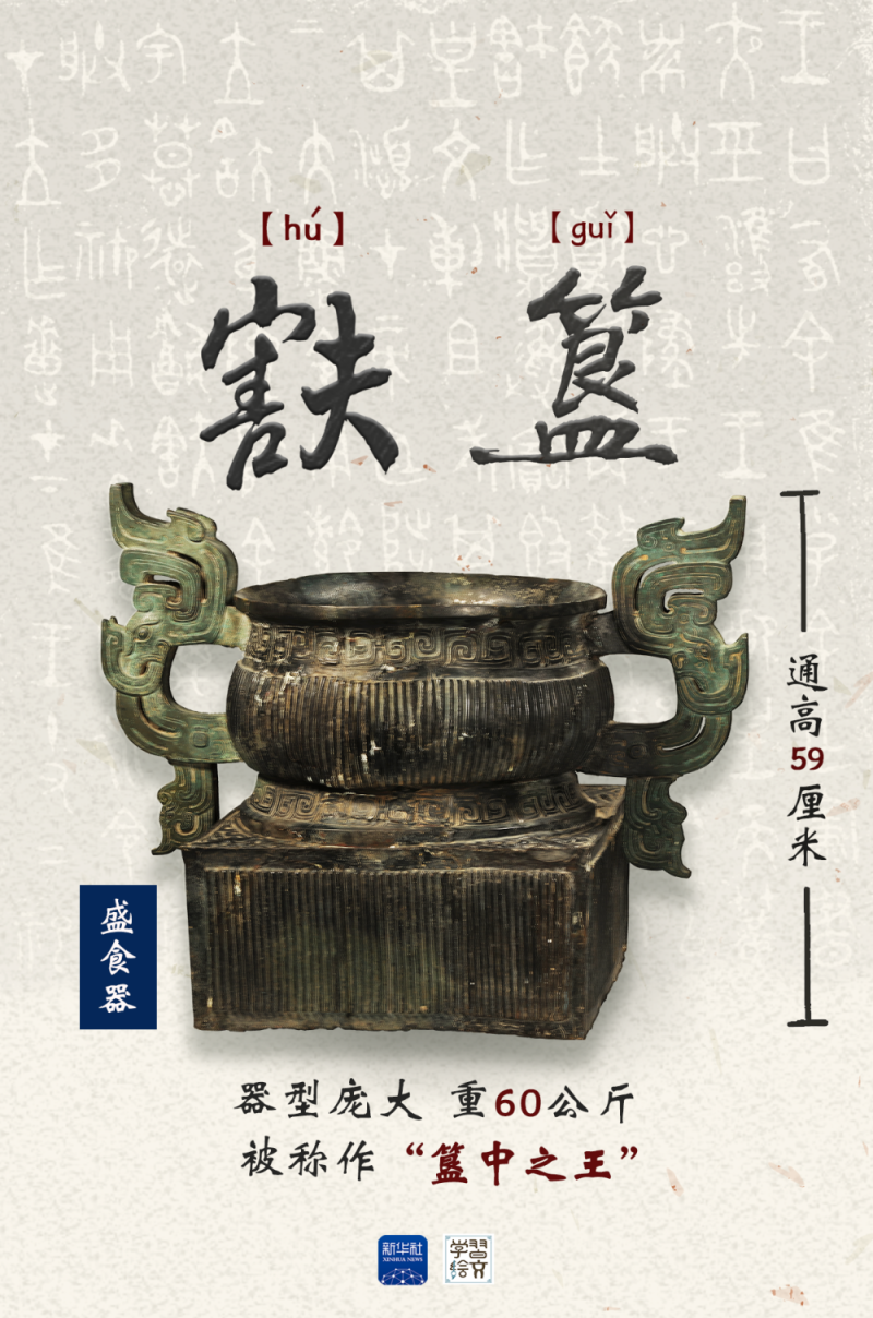 现展出于宝鸡青铜器博物院的㝬簋堪称“簋中之王”。圆形簋身与方形底座邻接,簋内铸有铭文124字,由此得知它是西周第十位皇帝周厉王姬㝬为祭祀先祖、祈神降福而作。