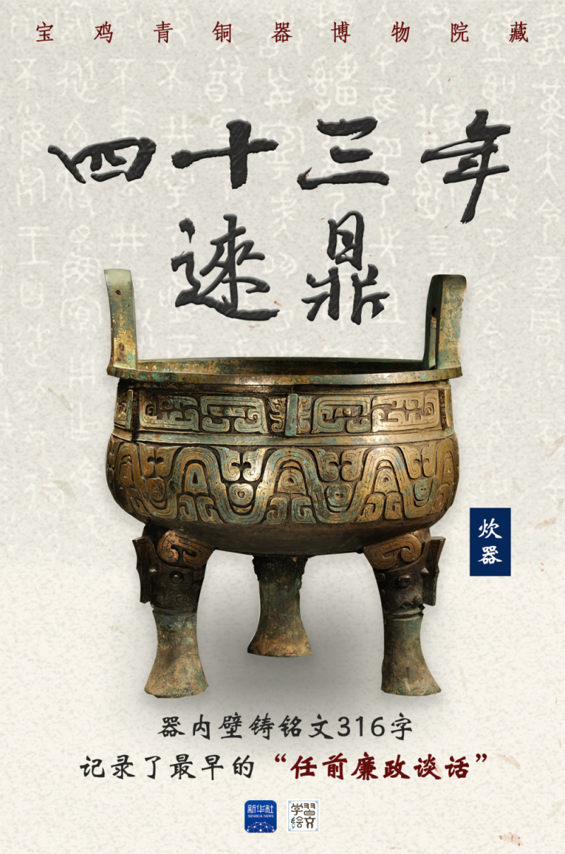 四十三年逨鼎共出土10件,大小不一。这是体积最大的一件,器内壁铸有铭文316字,陈说了周宣王43年,逨被提高为讼事历东谈主,绝顶于刻下的监察官。周皇帝警戒逨要施政严慎、照章贬责、明辨口舌、清廉从政。这与《周礼》中的“六廉”——廉善、廉能、廉敬、廉法、廉明、廉辨互相呼应。